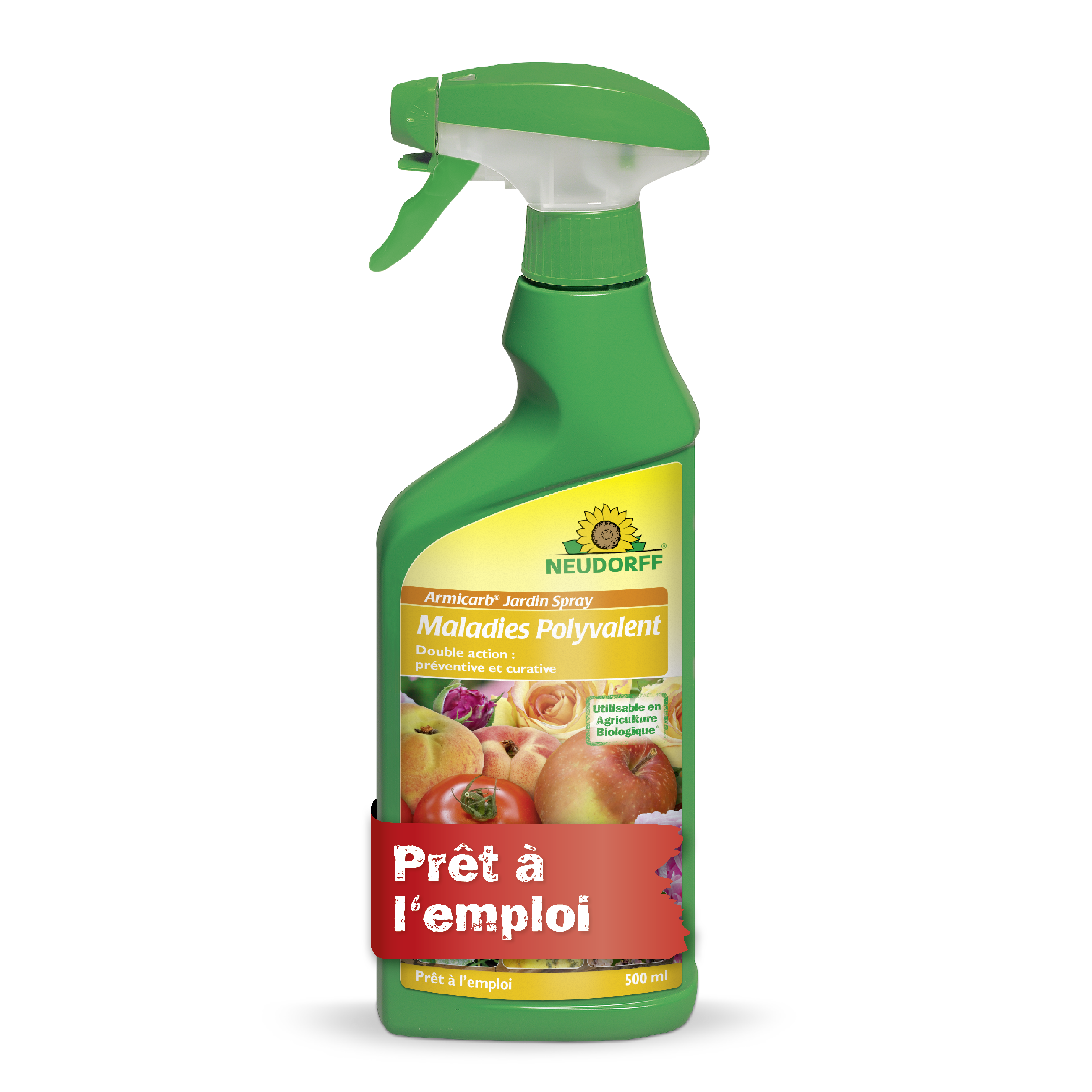 Le Maladies Polyvalent prêt à l'emploi+ est un produit phare de la marque Neudorff, spécialisée dans la protection des plantes et la lutte contre les maladies du jardin. Conçu à base d'hydrogénocarbonate de potassium, il agit de manière préventive et curative contre les maladies courantes comme l’oïdium (blanc) qui affectent les légumes, les fruits, les roses et les plantes ornementales. Facile à utiliser grâce à sa formulation prête à l'emploi, ce produit offre une solution efficace pour protéger vos plantes tout en respectant l’équilibre naturel dans votre jardin. De plus, avec un délai avant récolte de seulement 1 jour, vous pouvez utiliser le Maladies Polyvalent en toute confiance pour une protection optimale de vos cultures. Le Maladies Polyvalent prêt à l'emploi+ est utilisable en agriculture biologique*.