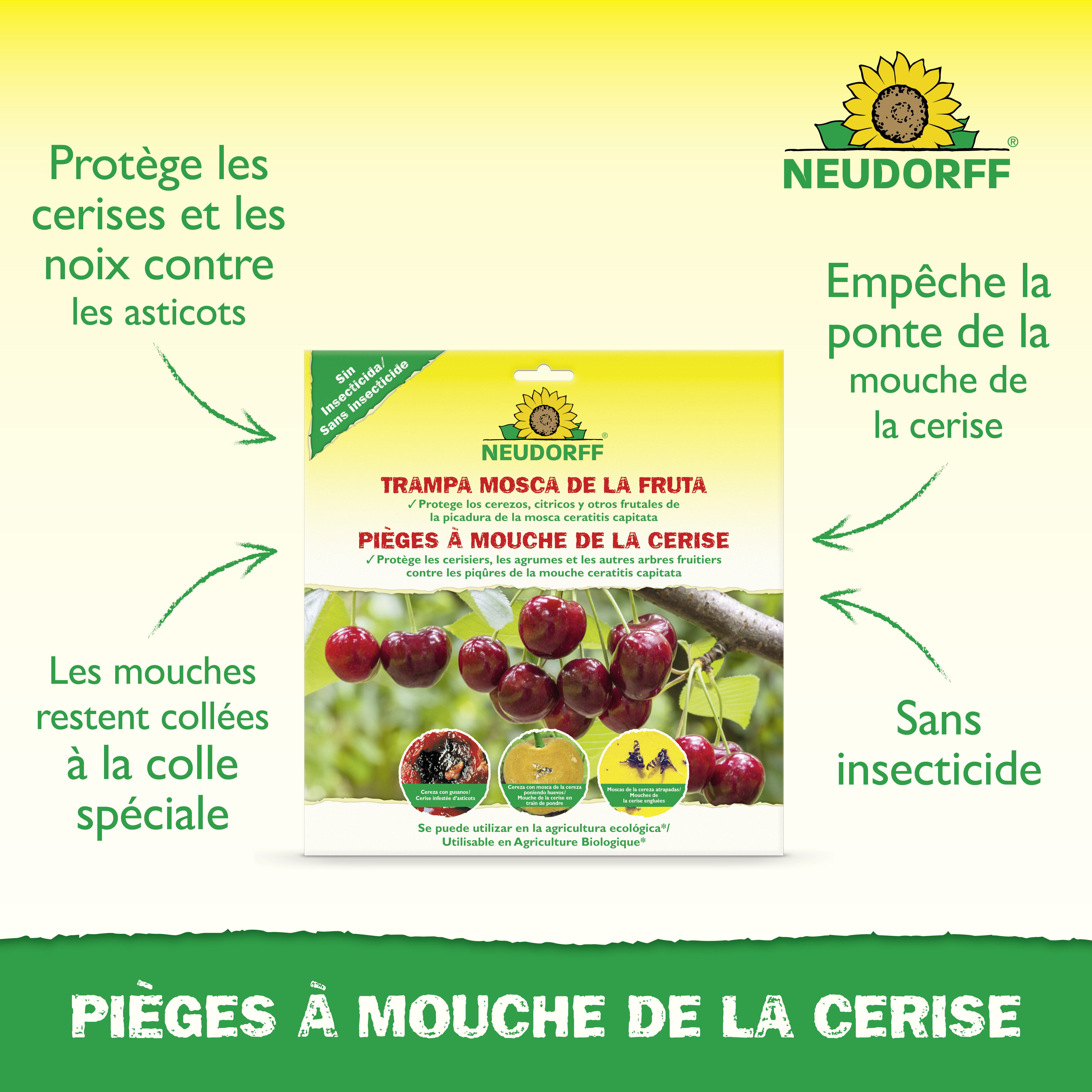 - Piège collant qui permet de lutter préventivement contre les vers des cerises