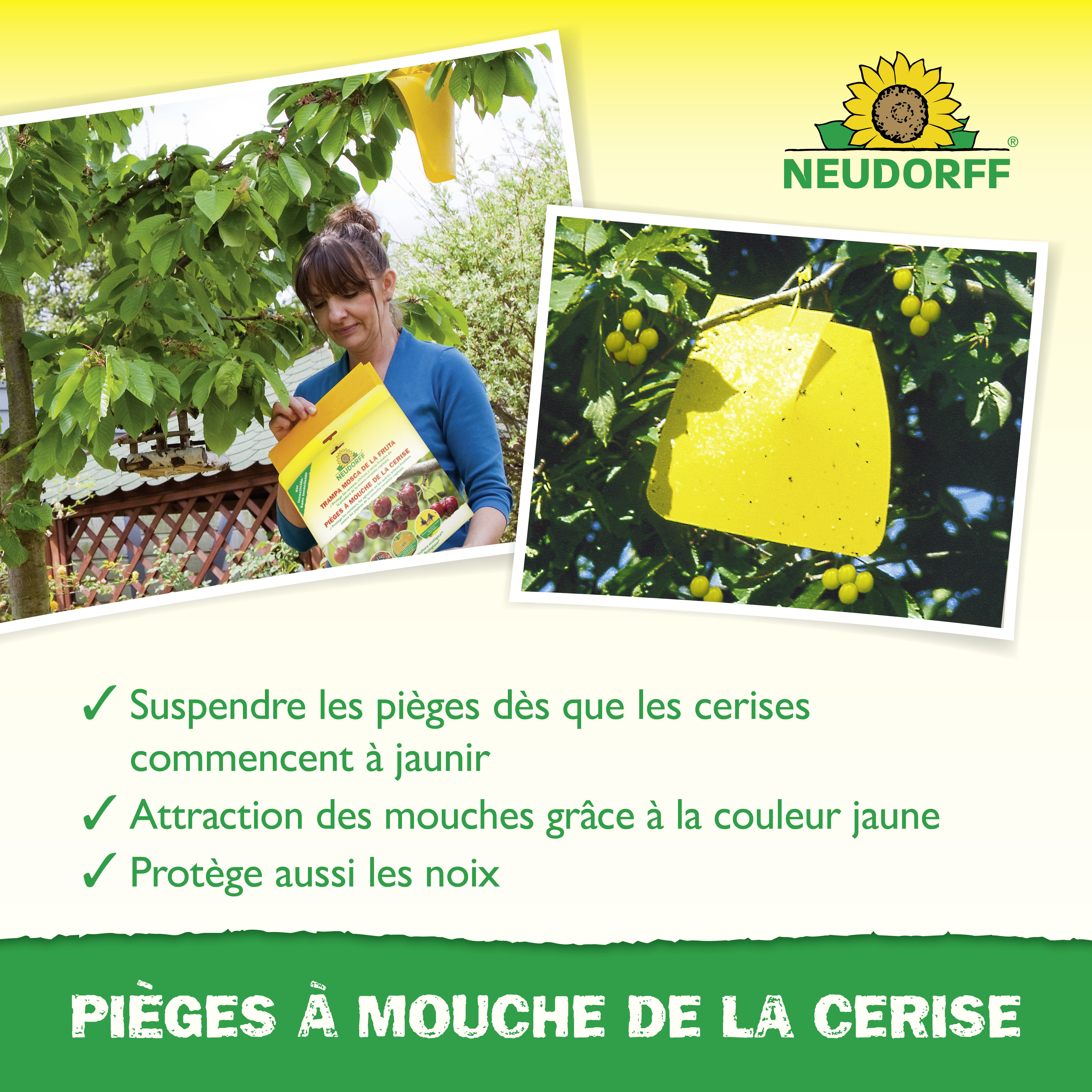 - Suspendre les pièges dès que les cerises commencent à jaunir.
