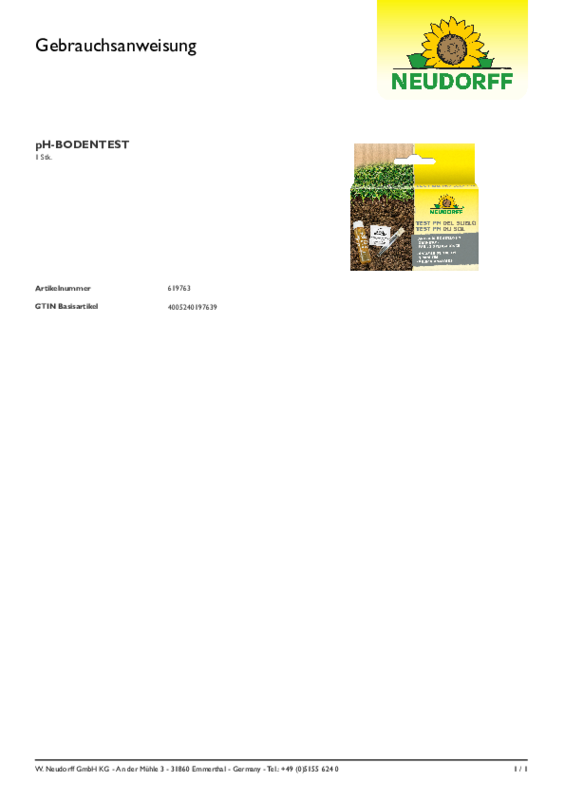 - Contenu : 8 doses de poudre pour tests de pH du sol, 1 tube à essai, 1 flacon d’eau distillée, 1 mode d’emploi
